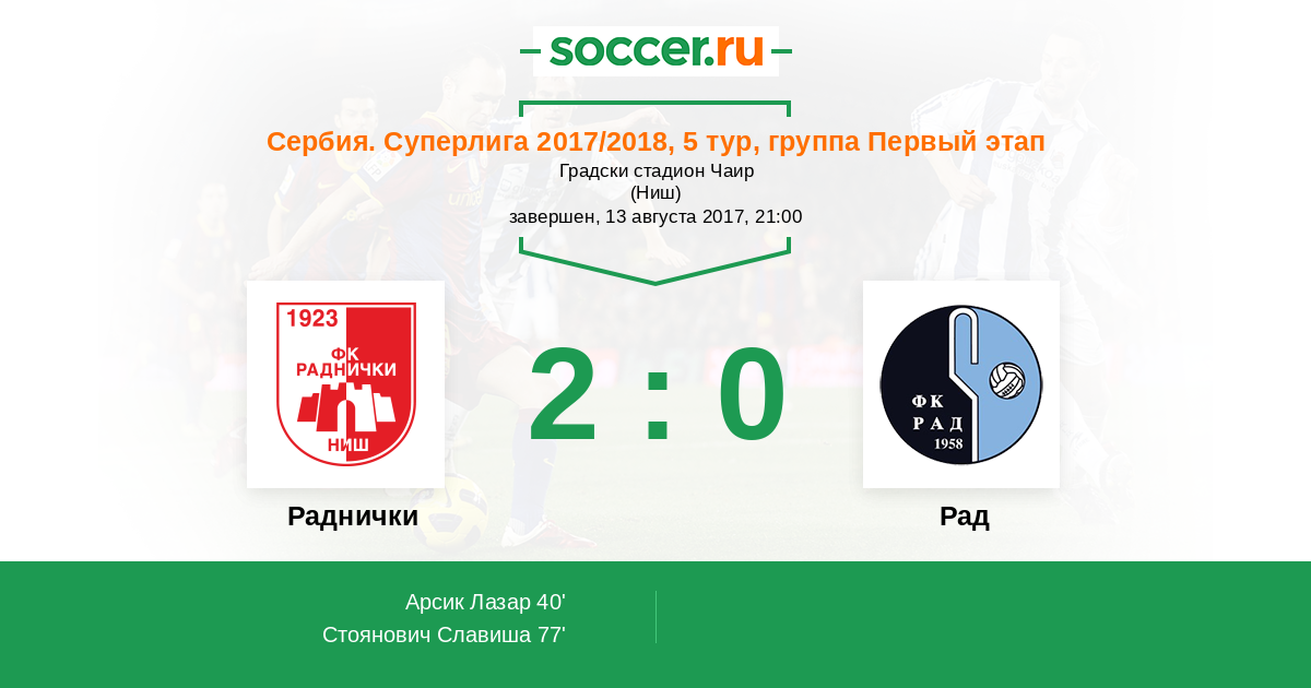 Раднички - Рад: обзор матча 13 августа 2017