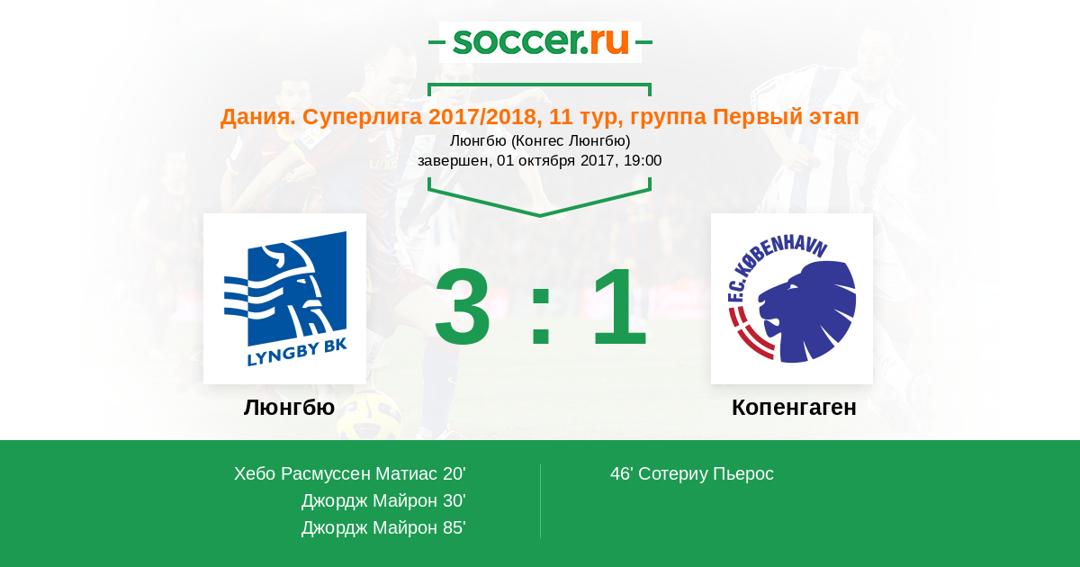 Люнгбю - Копенгаген: обзор матча 1 октября 2017