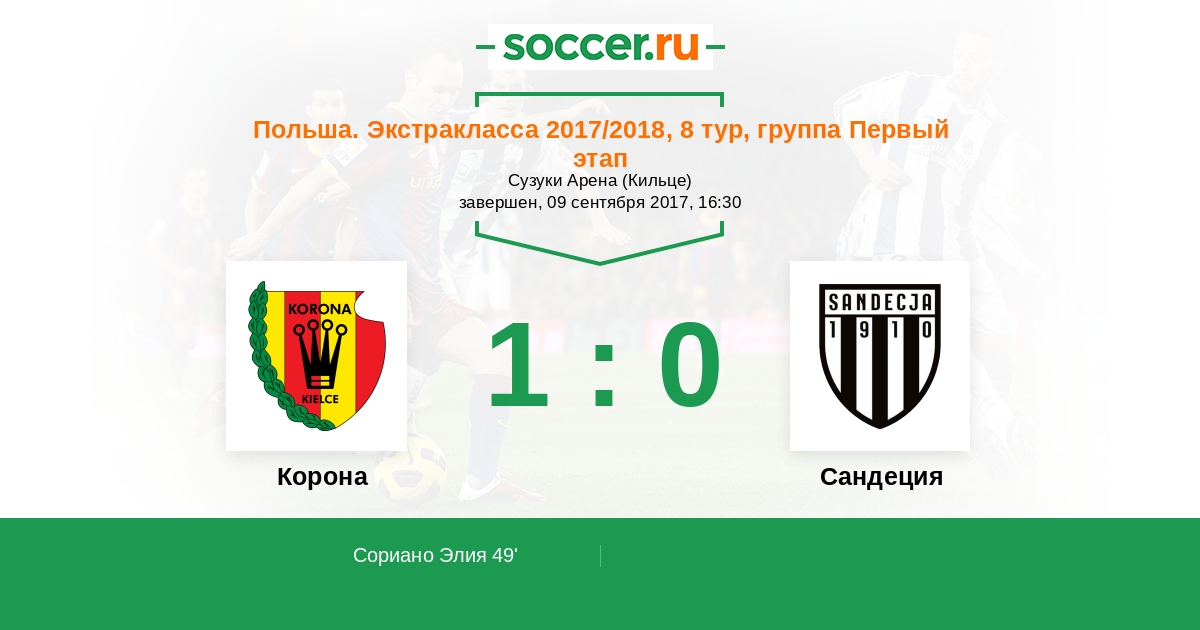 Корона - Сандеция: обзор матча 9 сентября 2017