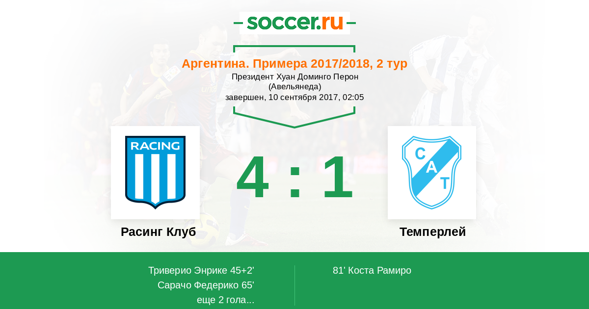 Расинг Клуб - Темперлей: обзор матча 10 сентября 2017