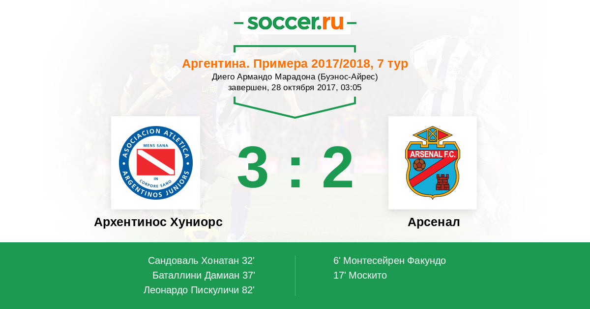 Архентинос Хуниорс - Арсенал: обзор матча 28 октября 2017