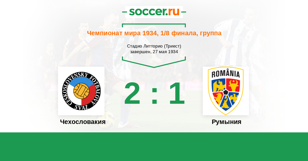 Чехословакия - Румыния: обзор матча 27 мая 1934