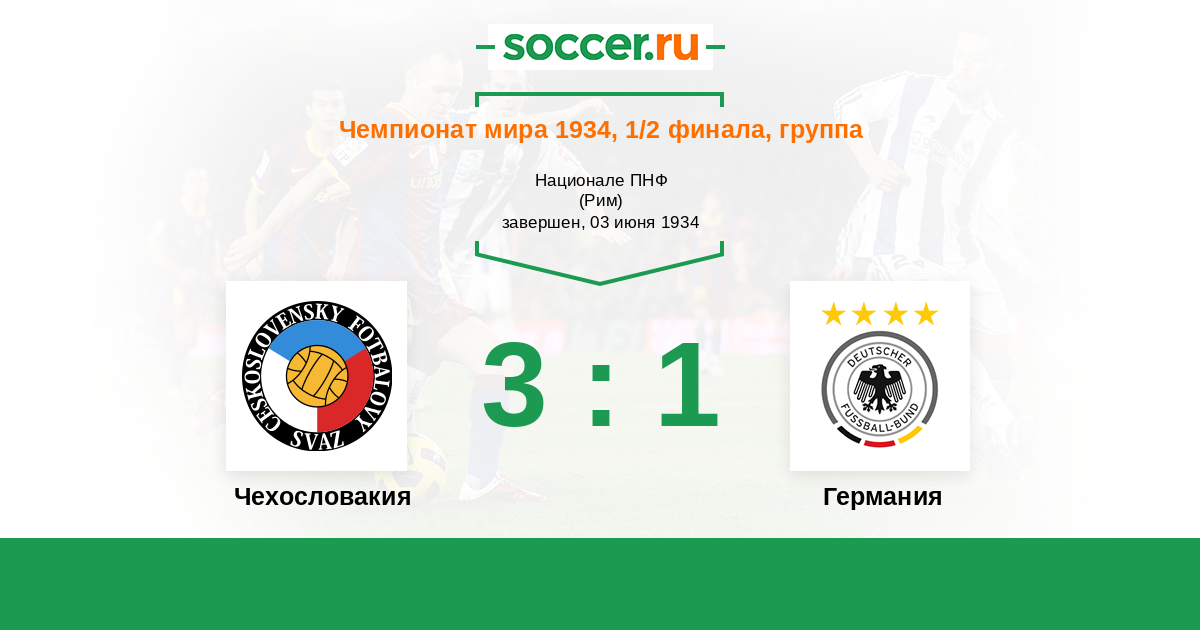 Чехословакия - Германия: обзор матча 3 июня 1934