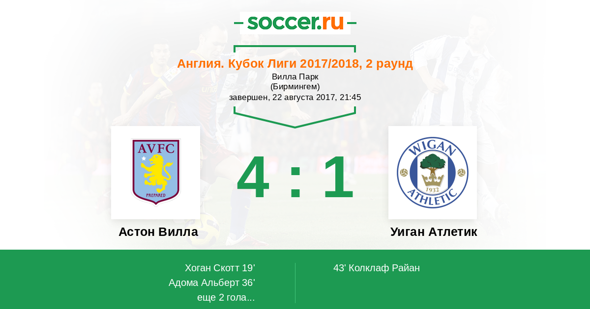 Астон Вилла - Уиган Атлетик: обзор матча 22 августа 2017