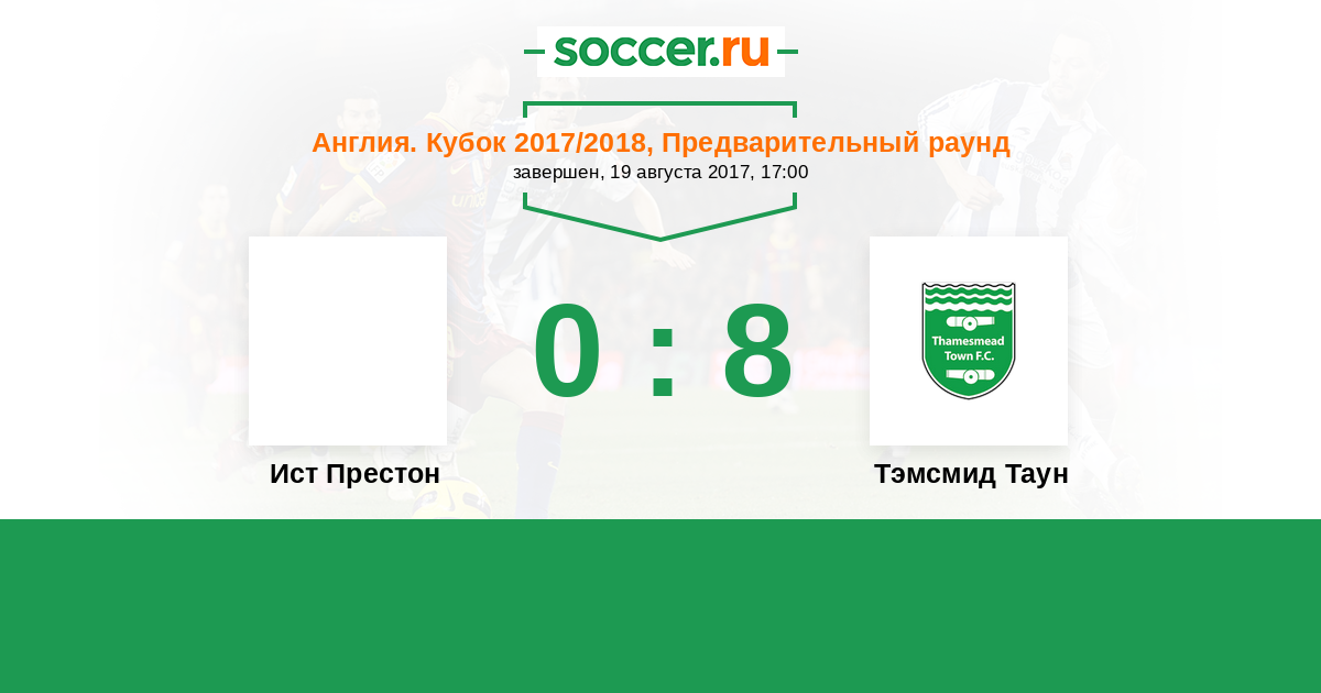 Ист Престон - Тэмсмид Таун: обзор матча 19 августа 2017