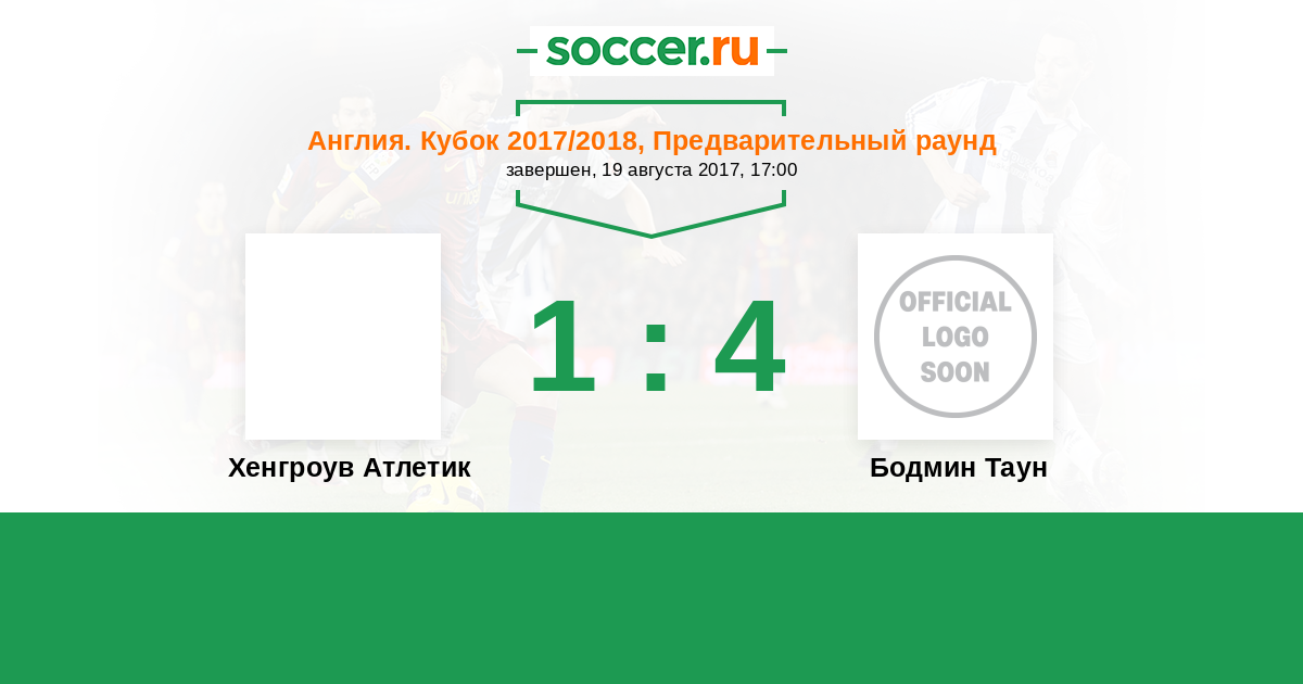 Хенгроув Атлетик - Бодмин Таун: обзор матча 19 августа 2017