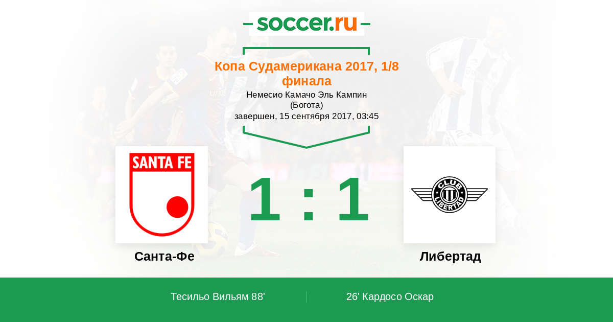 Санта-Фе - Либертад: обзор матча 15 сентября 2017