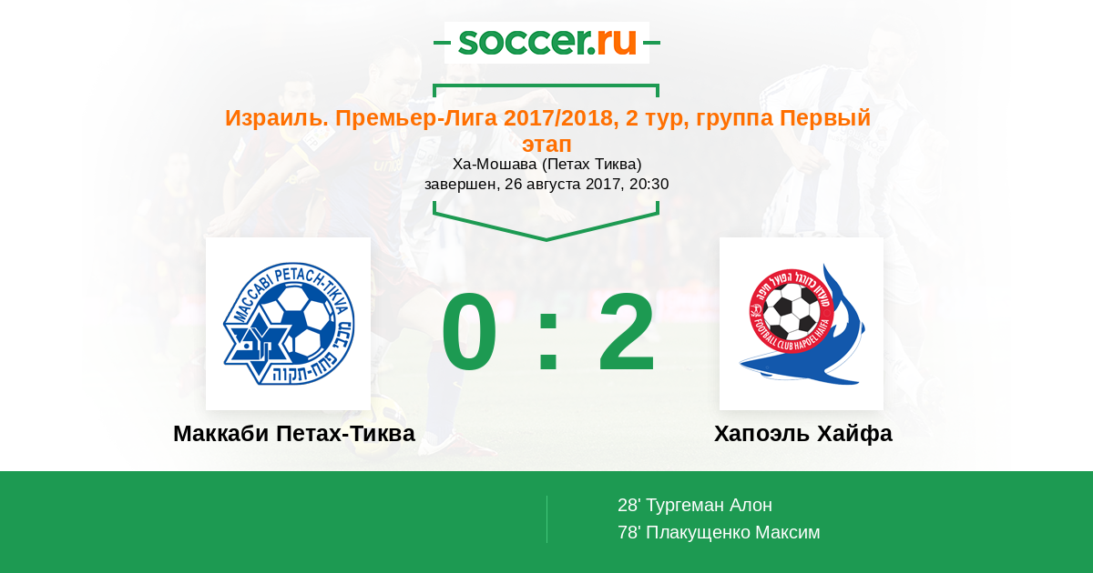 Маккаби Петах-Тиква - Хапоэль Хайфа: обзор матча 26 августа 2017