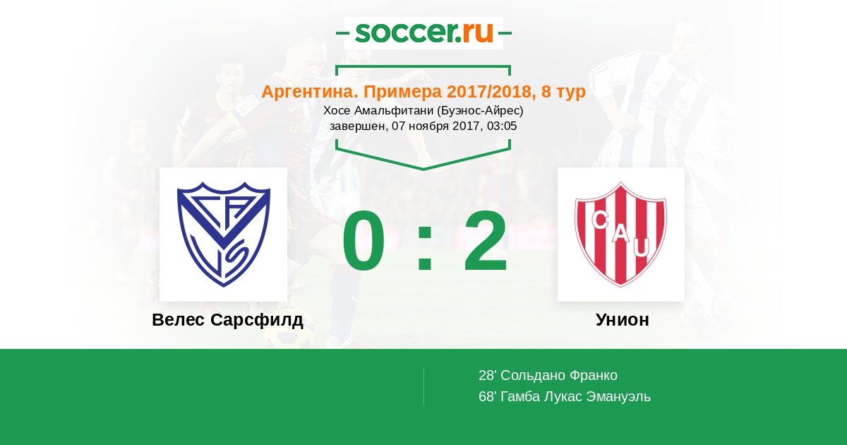 Велес Сарсфилд - Унион: обзор матча 7 ноября 2017