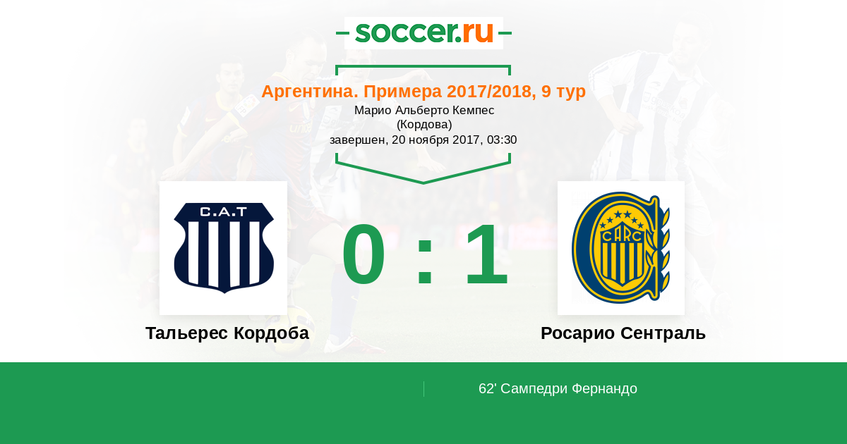Тальерес Кордоба - Росарио Сентраль: обзор матча 20 ноября 2017
