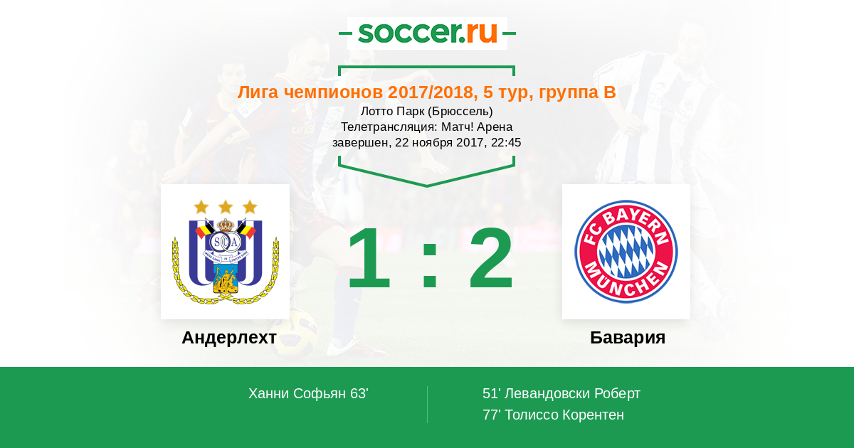 Финальный свисток! "Бавария" в гостях обыграла "Андерлехт".