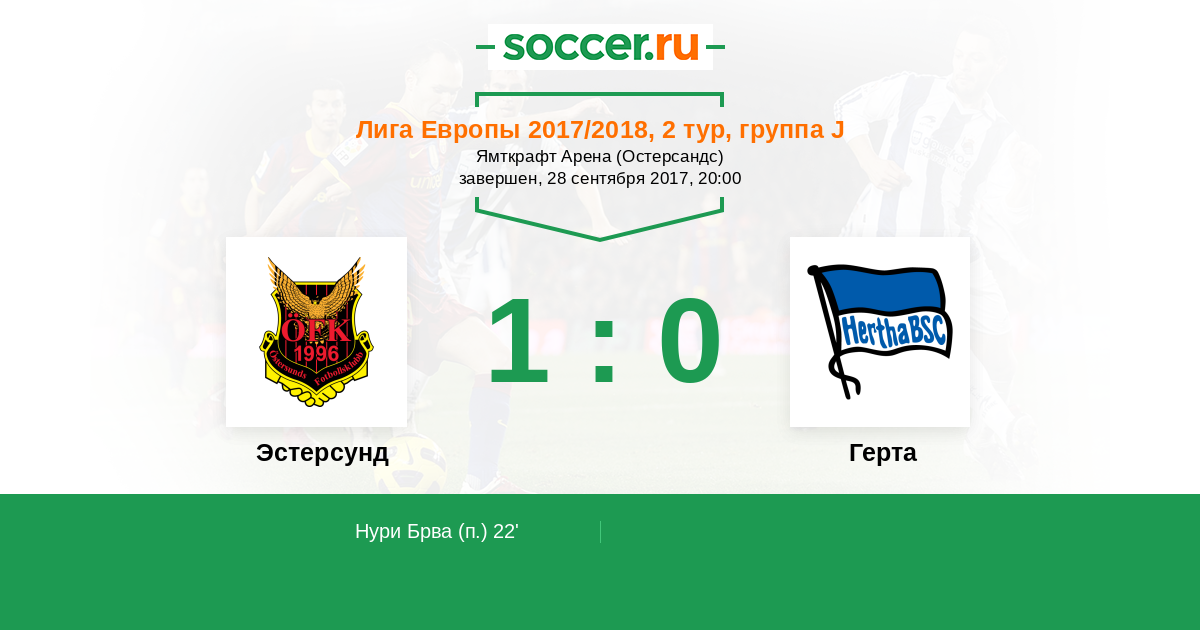 Эстерсунд - Герта: обзор матча 28 сентября 2017