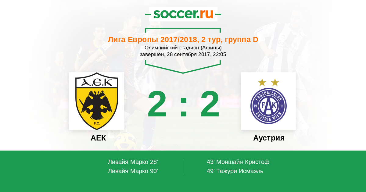 АЕК - Аустрия: обзор матча 28 сентября 2017