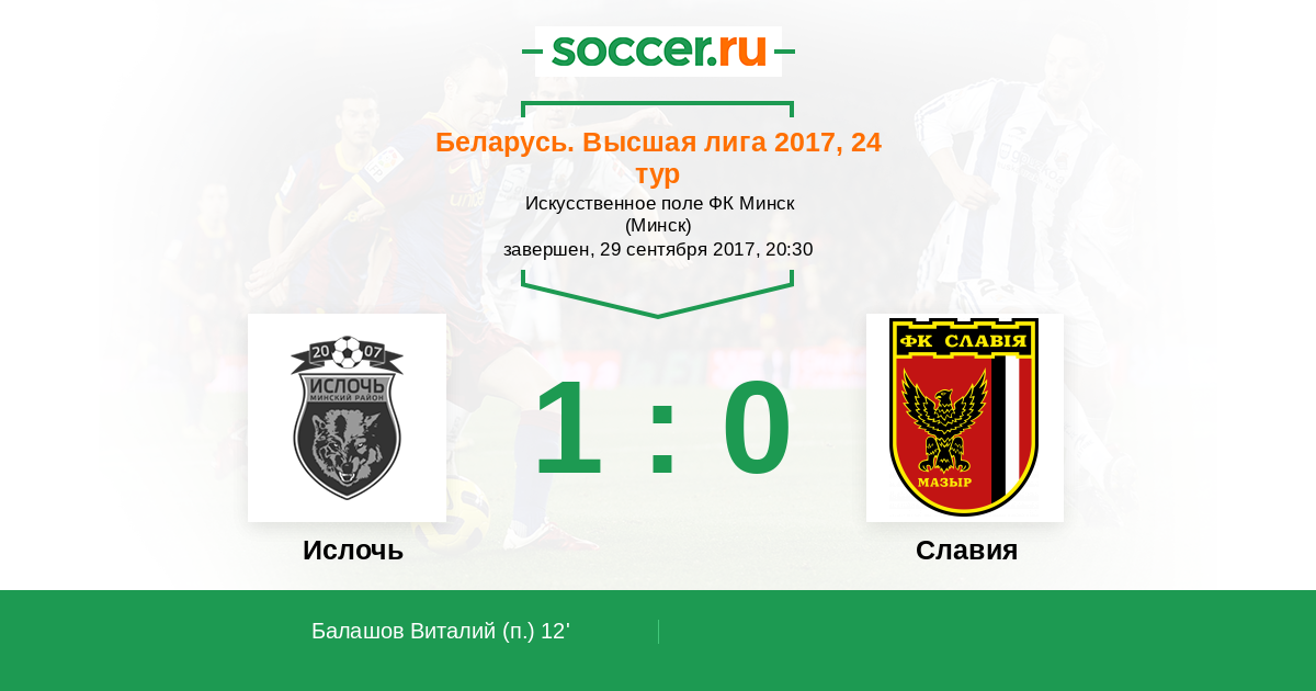 Ислочь - Славия: обзор матча 29 сентября 2017