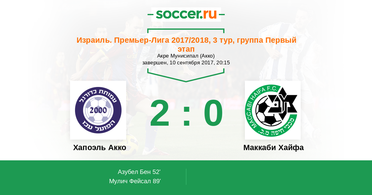 Хапоэль Акко - Маккаби Хайфа: обзор матча 10 сентября 2017