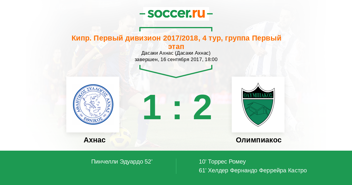 Ахнас - Олимпиакос: обзор матча 16 сентября 2017