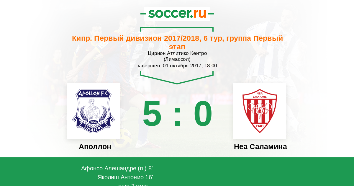 Аполлон - Неа Саламина: обзор матча 1 октября 2017