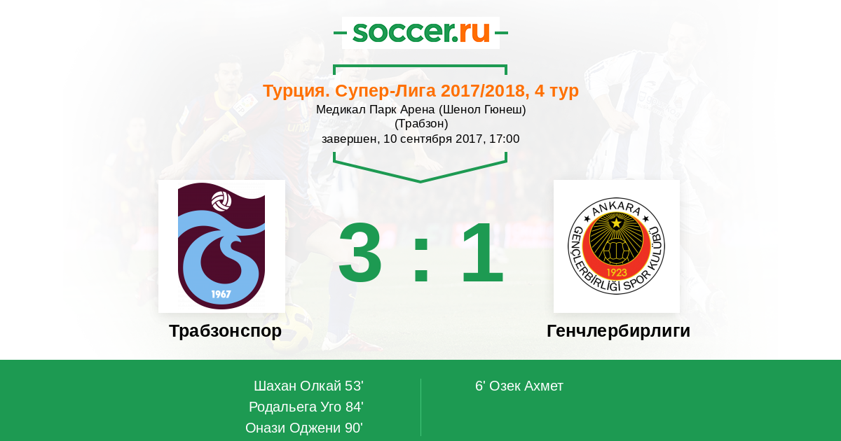 Трабзонспор - Генчлербирлиги: обзор матча 10 сентября 2017