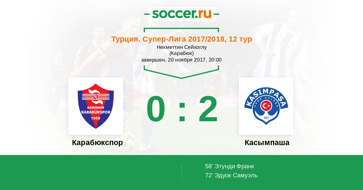 Карабюкспор - Касымпаша: обзор матча 20 ноября 2017