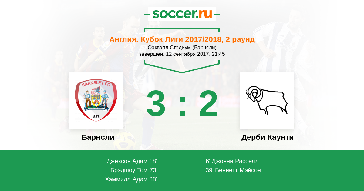 Барнсли - Дерби Каунти: обзор матча 12 сентября 2017