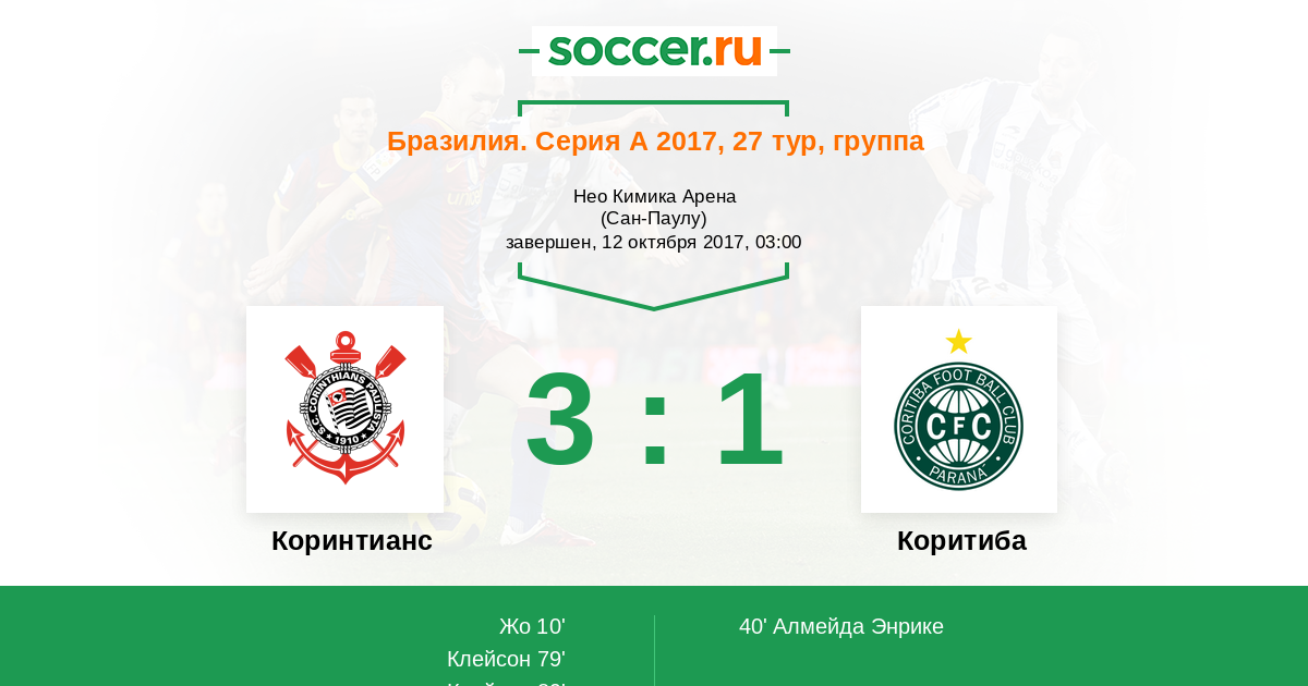 Коринтианс - Коритиба: обзор матча 12 октября 2017