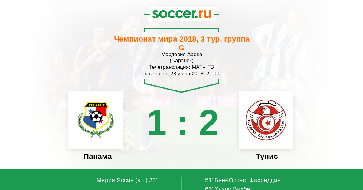Приветствуем всех любителей футбола на "Соккер.ру"! Сегодня завершается групповой этап Чемпионата Мира 2018: на новенькой "Мордовия Арене" в Саранске сборные Панамы и Туниса в ничего не решающем для себя с турнирной точки зрения матче попытаются громко хлопнуть дверью, набрав хоть какие-то очки на Мундиале в России. Волей жребия еще до старта мирового первенства было понятно, что особой борьбы за путевки в раунд плэй-офф в квартете "G" не получится, хоть и ныне проходящий турнир в России достаточно густ на сенсации. Панамцы сумели оказать сопротивление только в одном тайме из 4-ех в совокупности в матчах с Бельгией и Англией, чего явно было недостаточно хотя бы для одного балла - разгромы состоялись и с подопечными Мартинеса (0-3), и с командой Саутгейта (1-6). Что касается африканцев, то те изрядно заставили попотеть англичан (1-2), которые имели громадные проблемы с реализацией голевых моментов в первом туре, однако очень просто отдали победу бельгийцам (2-5). И панамцы, и тунисцы пока что не наблюдают баллов в графе "набранные очки", но сегодня этот момент в любом случае исправится. Все же на бумаге фаворитом выглядит коллектив Маалула, ибо представители Северной Америки, похоже, задачу максимум уже выполнили - забили гол родоначальникам футбола, чему искренне радовалась вся страна.