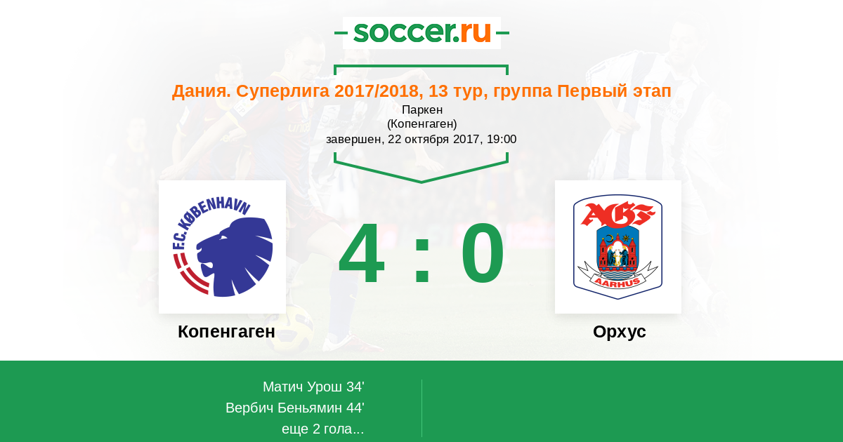 Копенгаген - Орхус: обзор матча 22 октября 2017