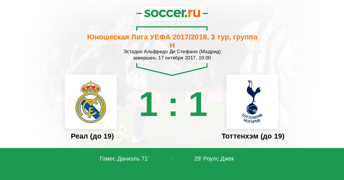 Реал (до 19) - Тоттенхэм (до 19): обзор матча 17 октября 2017