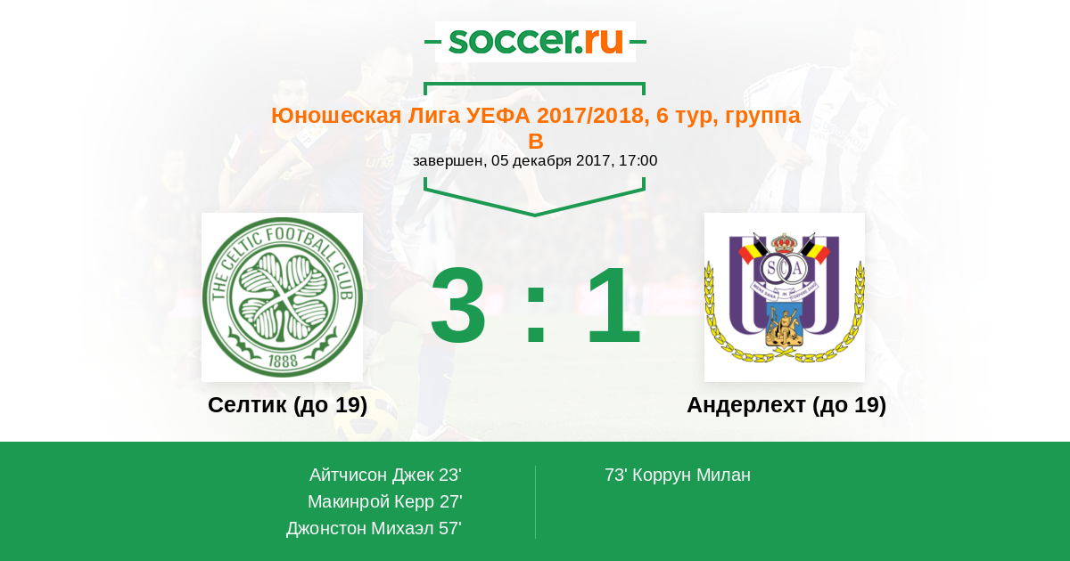 Селтик (до 19) - Андерлехт (до 19): обзор матча 5 декабря 2017
