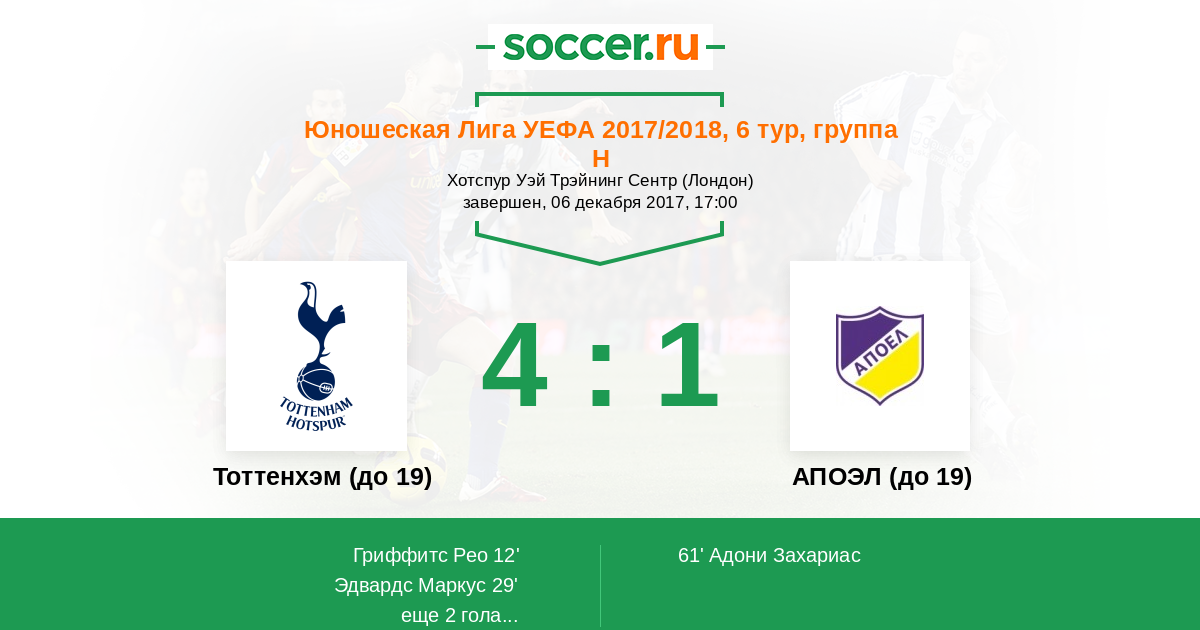 Тоттенхэм (до 19) - АПОЭЛ (до 19): обзор матча 6 декабря 2017