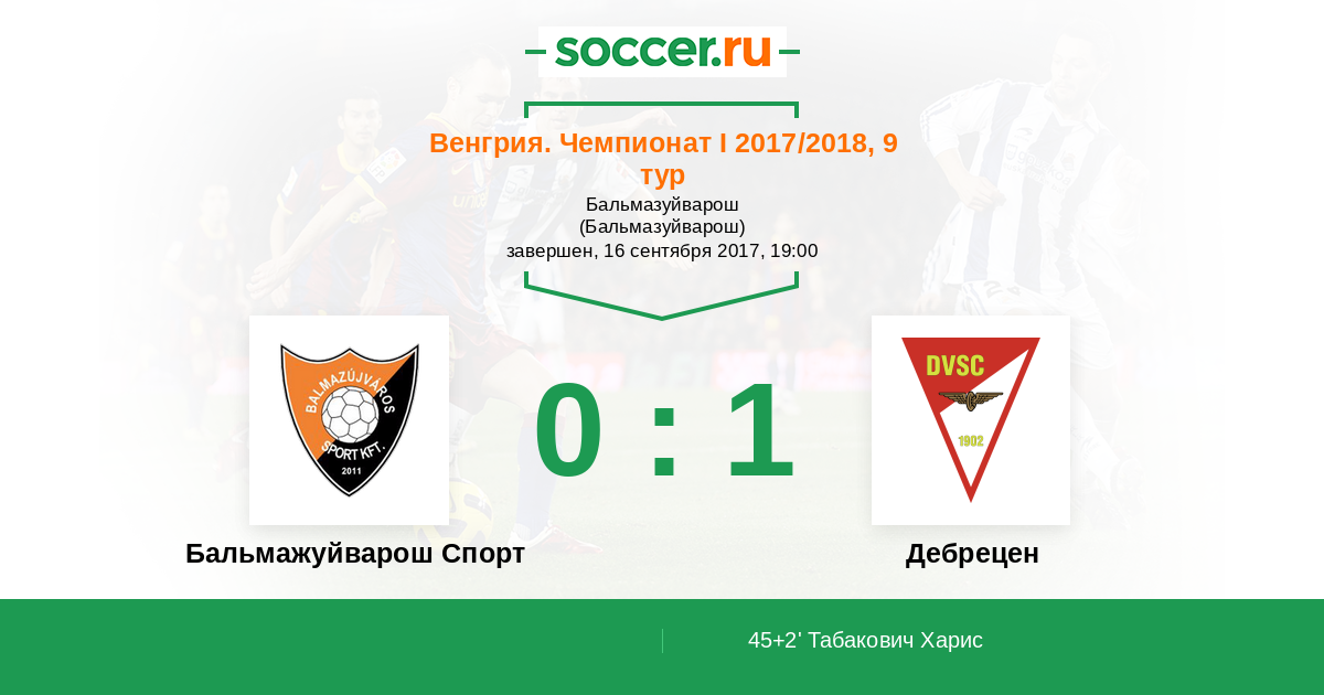 Бальмажуйварош Спорт - Дебрецен: обзор матча 16 сентября 2017