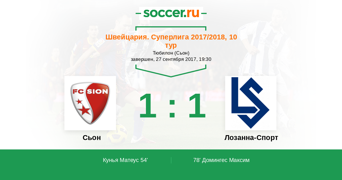 Сьон - Лозанна-Спорт: обзор матча 27 сентября 2017