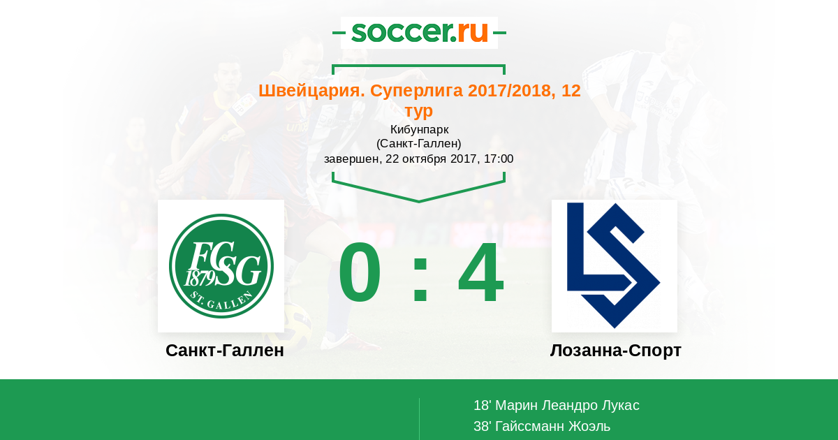 Санкт-Галлен - Лозанна-Спорт: обзор матча 22 октября 2017