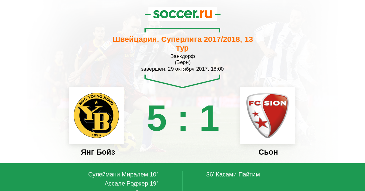 Янг Бойз - Сьон: обзор матча 29 октября 2017