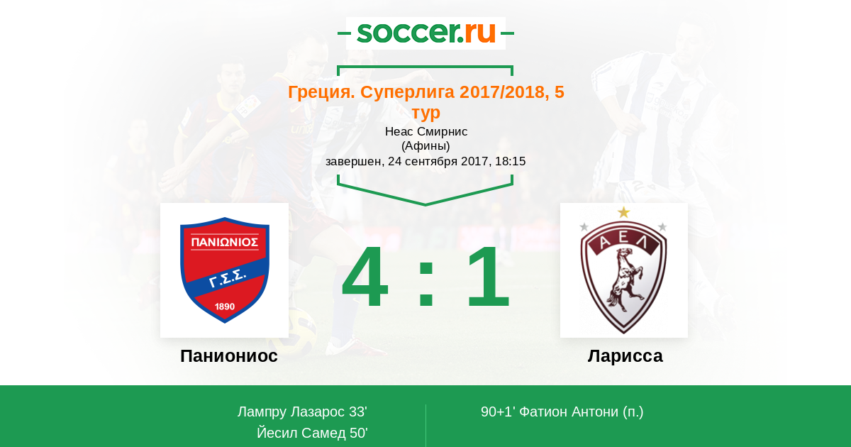 Паниониос - Ларисса: обзор матча 24 сентября 2017