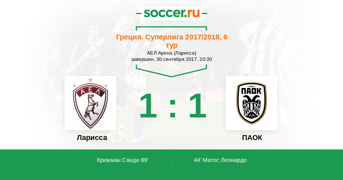Ларисса - ПАОК: обзор матча 30 сентября 2017