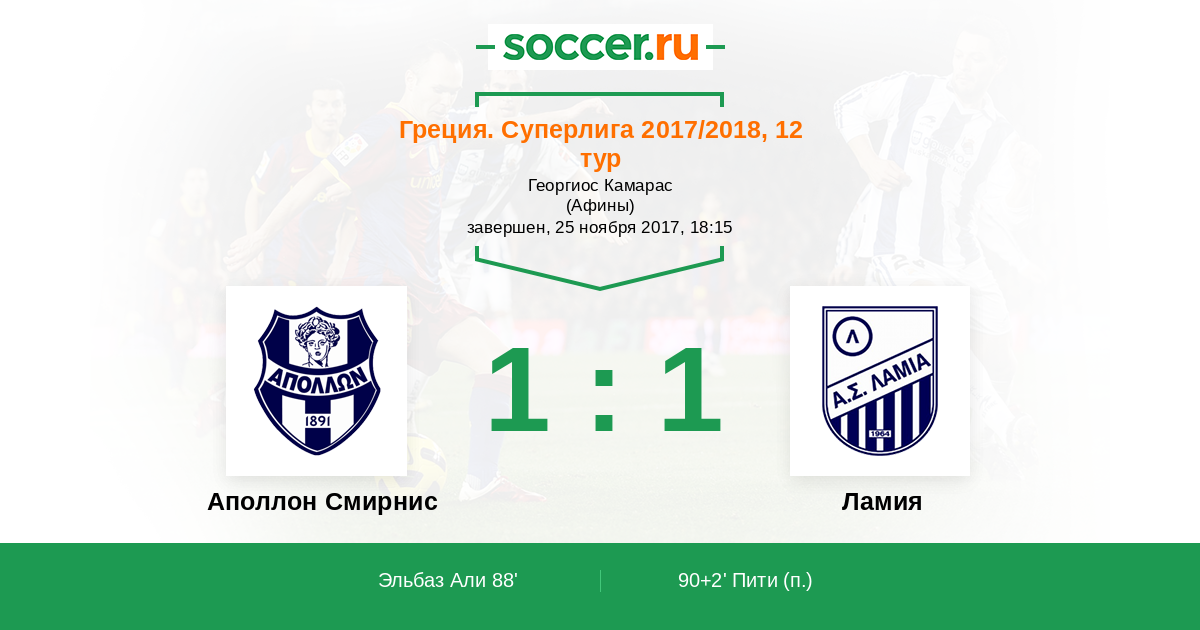 Аполлон Смирнис - Ламия: обзор матча 25 ноября 2017