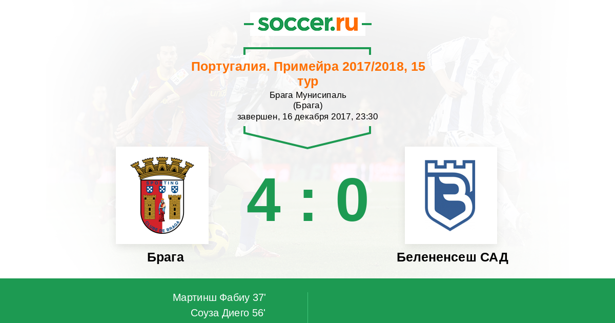 Брага - Белененсеш САД: обзор матча 16 декабря 2017