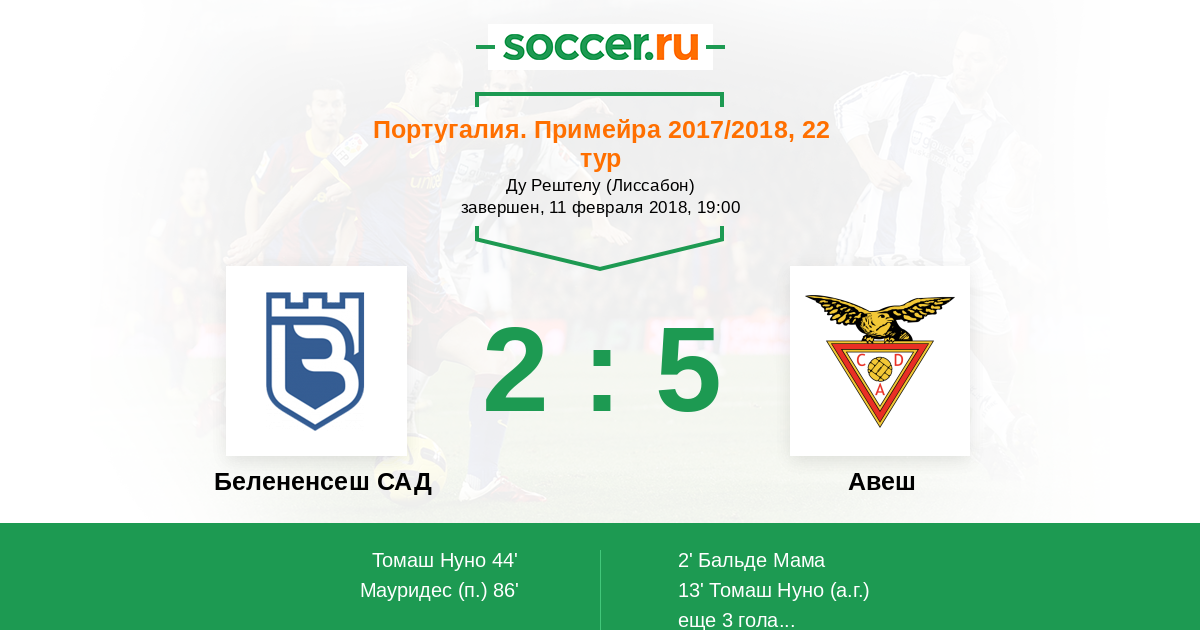Белененсеш САД - Авеш: обзор матча 11 февраля 2018