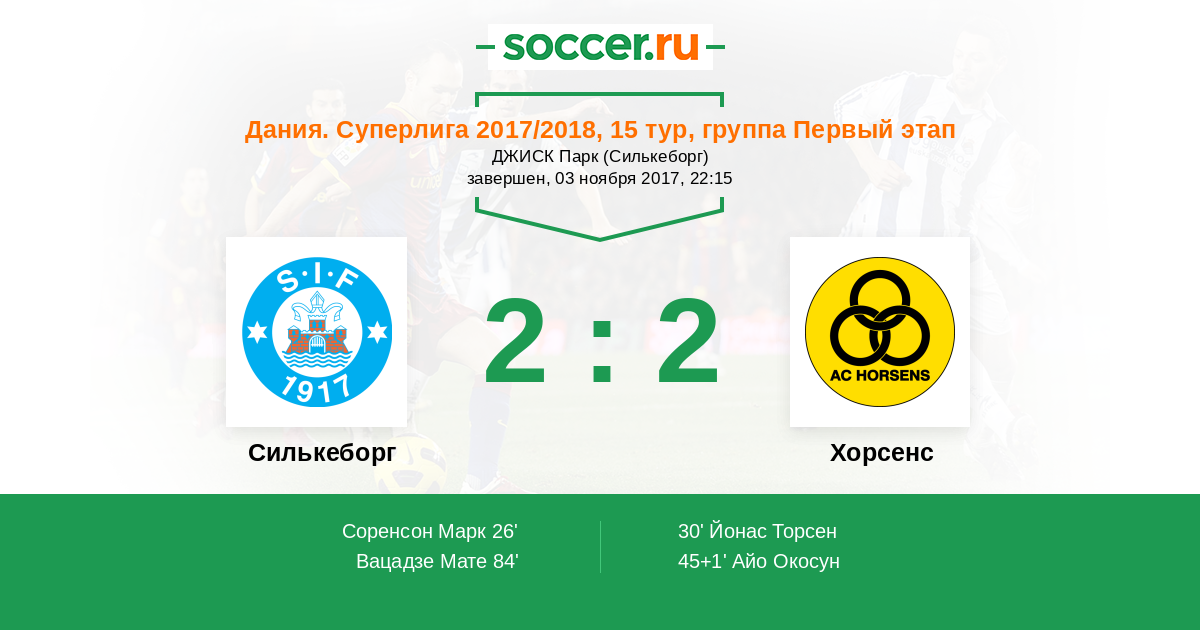 Силькеборг - Хорсенс: обзор матча 3 ноября 2017