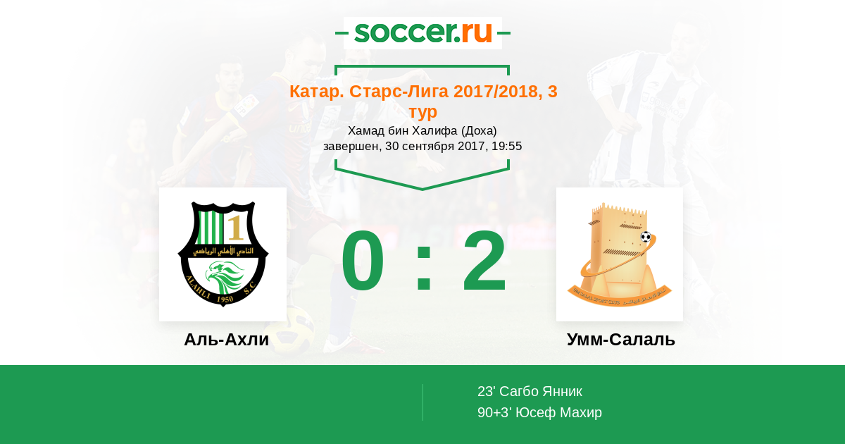 Аль-Ахли - Умм-Салаль: обзор матча 30 сентября 2017
