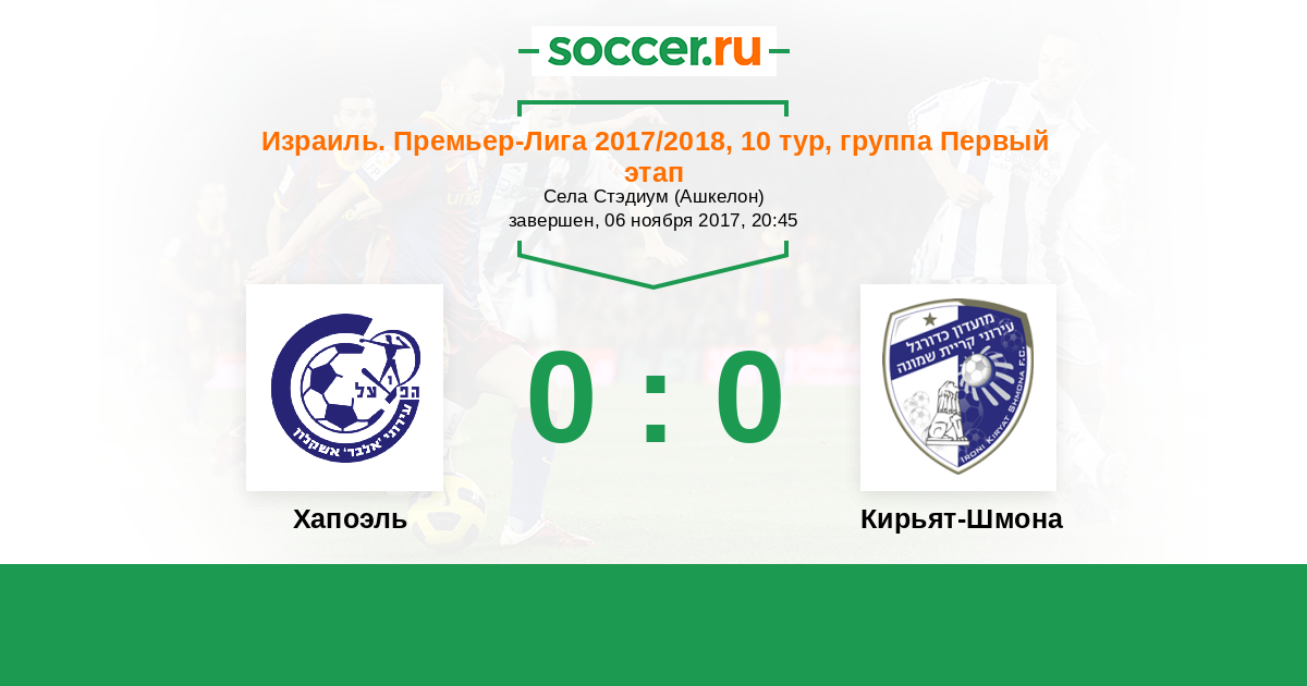 Хапоэль - Кирьят-Шмона: обзор матча 6 ноября 2017