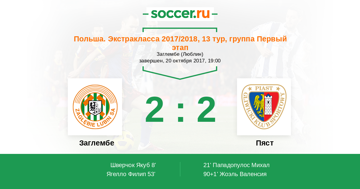 Заглембе - Пяст: обзор матча 20 октября 2017