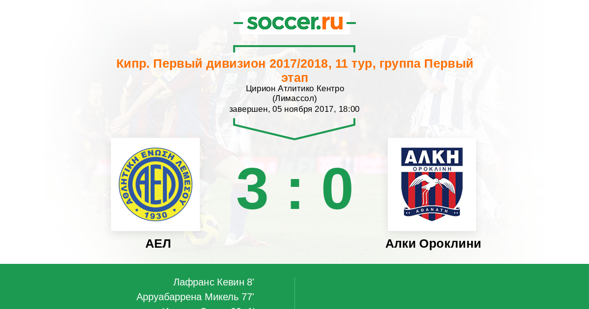 АЕЛ - Алки Ороклини: обзор матча 5 ноября 2017