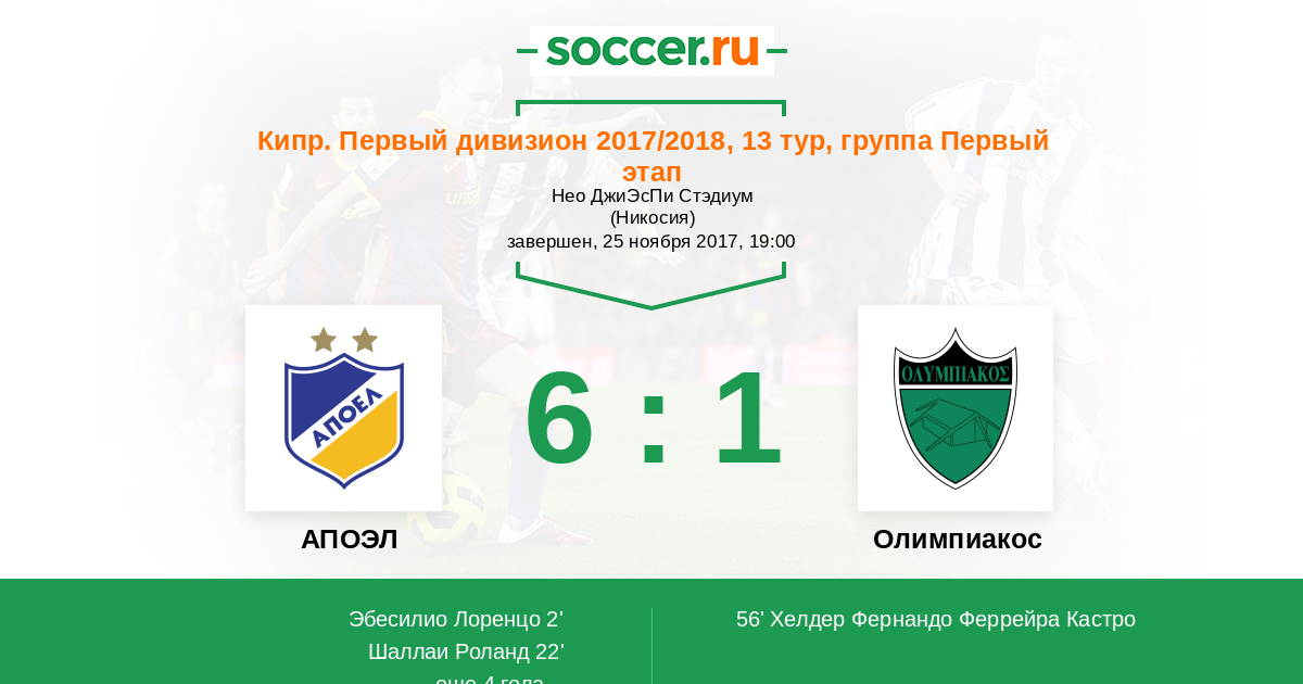 АПОЭЛ - Олимпиакос: обзор матча 25 ноября 2017