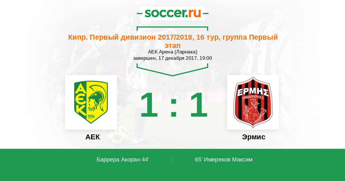 АЕК - Эрмис: обзор матча 17 декабря 2017