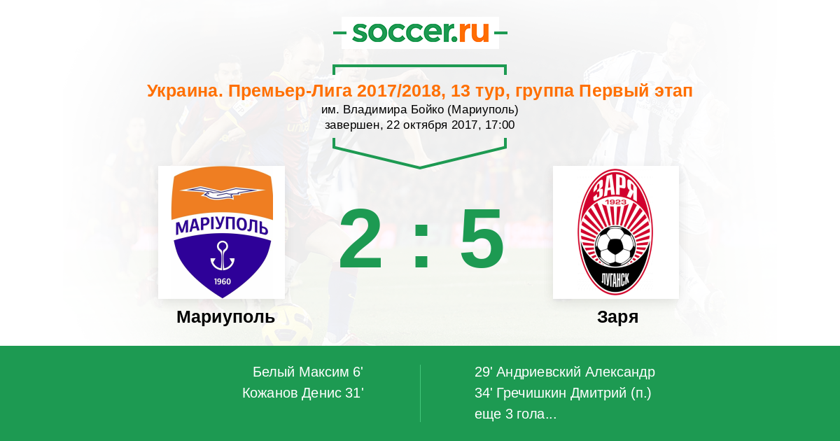 Мариуполь - Заря: обзор матча 22 октября 2017