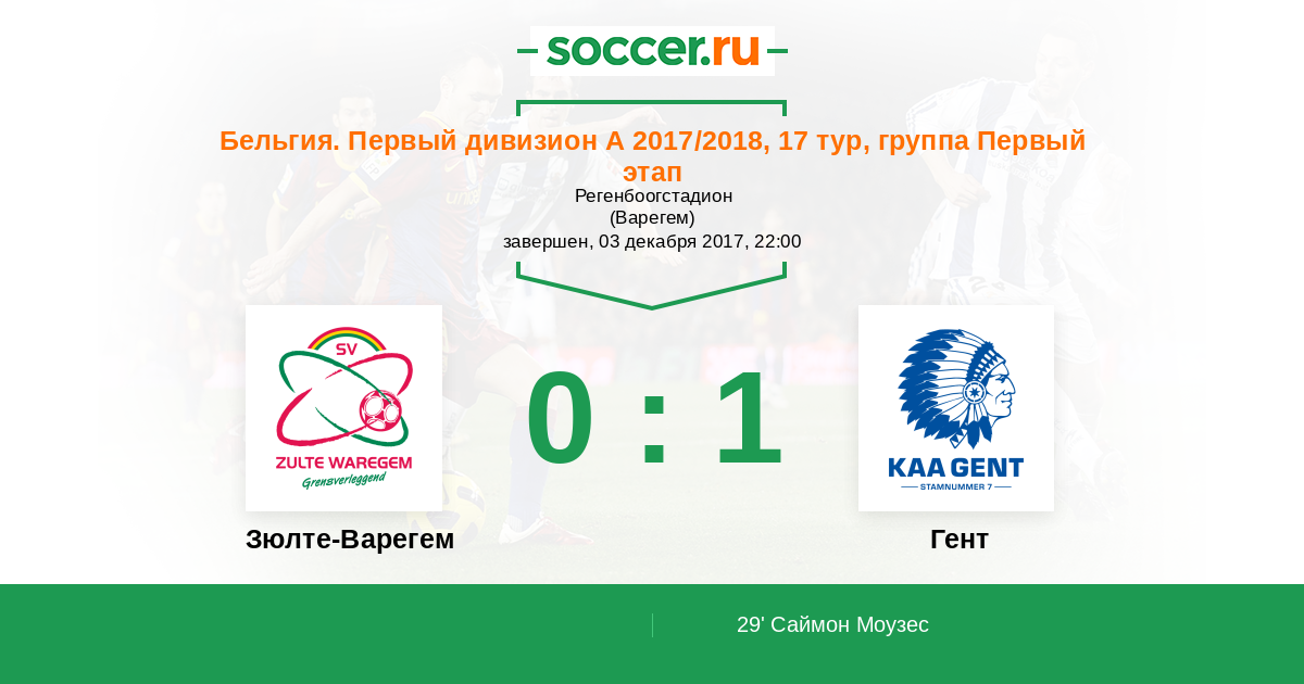 Зюлте-Варегем - Гент: обзор матча 3 декабря 2017