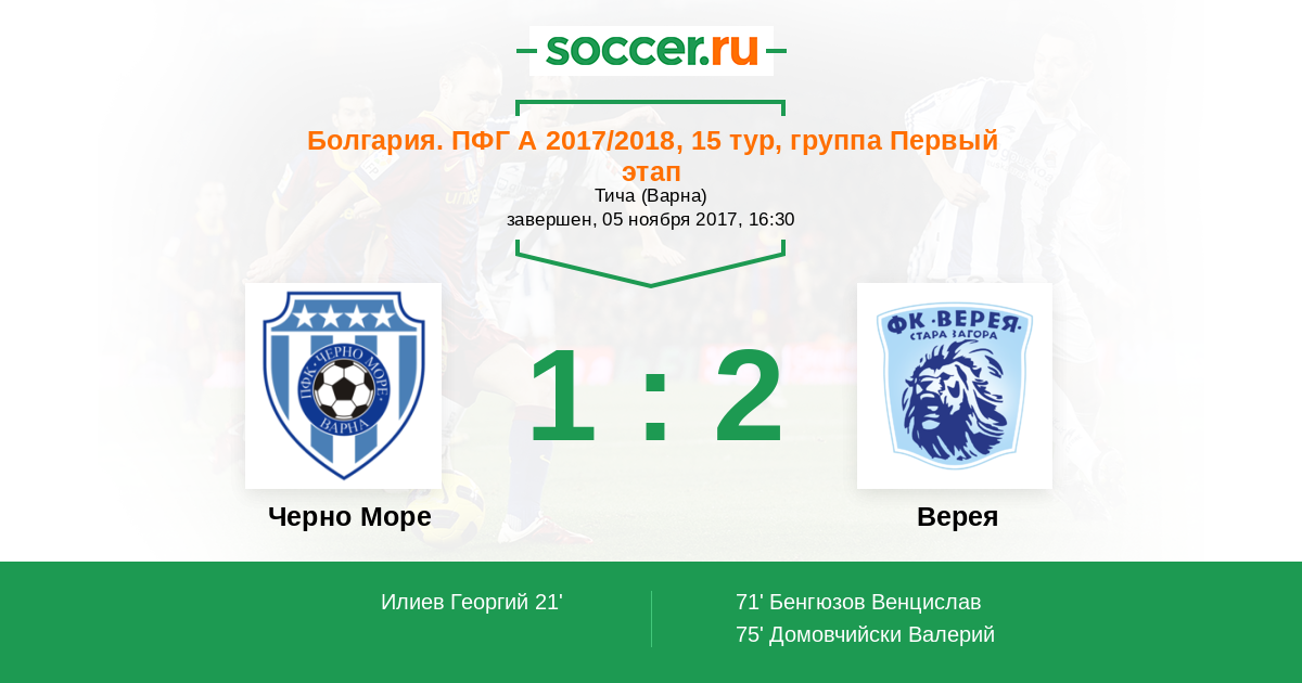 Черно Море - Верея: обзор матча 5 ноября 2017