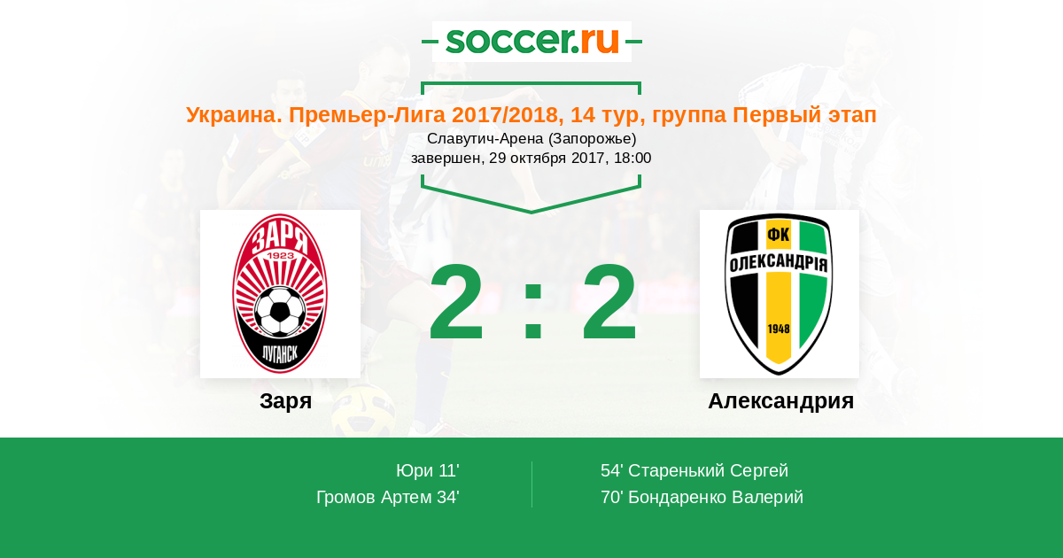 Заря - Александрия: обзор матча 29 октября 2017